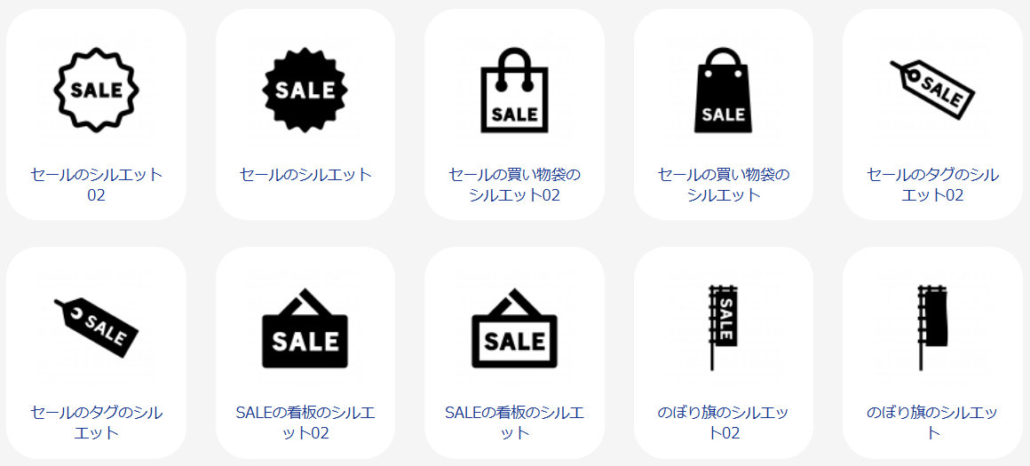 シルエットアイコンは、シンプルながらも強い印象を与えることができます。特に、キャンペーンやセールなどの情報を強調したい場合に効果的です。